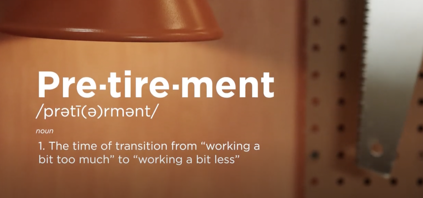 One way we could parlay copy to activate these customers was to understand that to get them into the consideration phase, we had to target them well before their career and financial lives hit that traditional "retirement" when reverse mortgages typically become an option. We coined several terms, like this one, to label this new era of life when they could begin winding down from working a bit too much to one in which they could work a bit less.